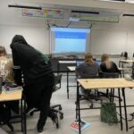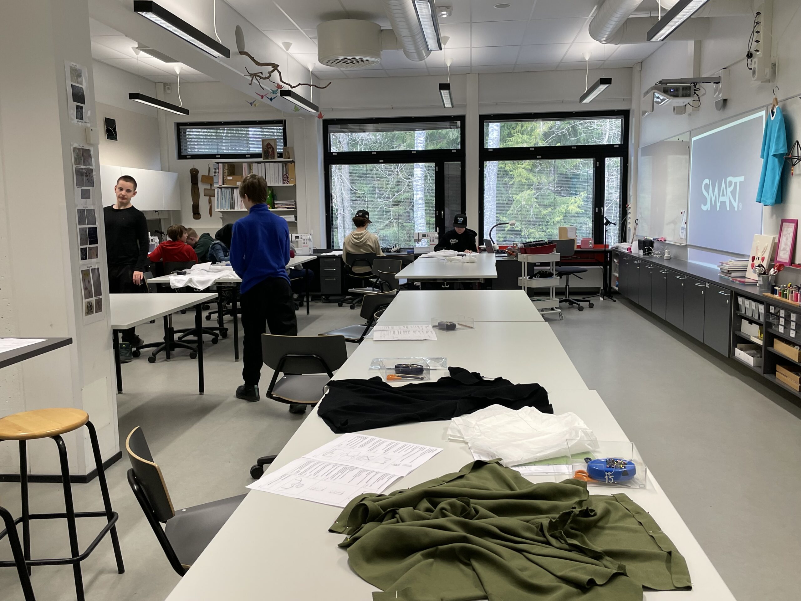 Pak následuje seznámení se školou – provádí nás dvě děvčata 8. ročníku. Občas si vypomůžou nějakým slovíčkem, ale reagují na naše dotazy a ukazují nám školu, otevírají dveře do učeben, kde probíhá výuka. Vždy se finsky zeptají, zda můžeme vstoupit a chvilku se dívat.